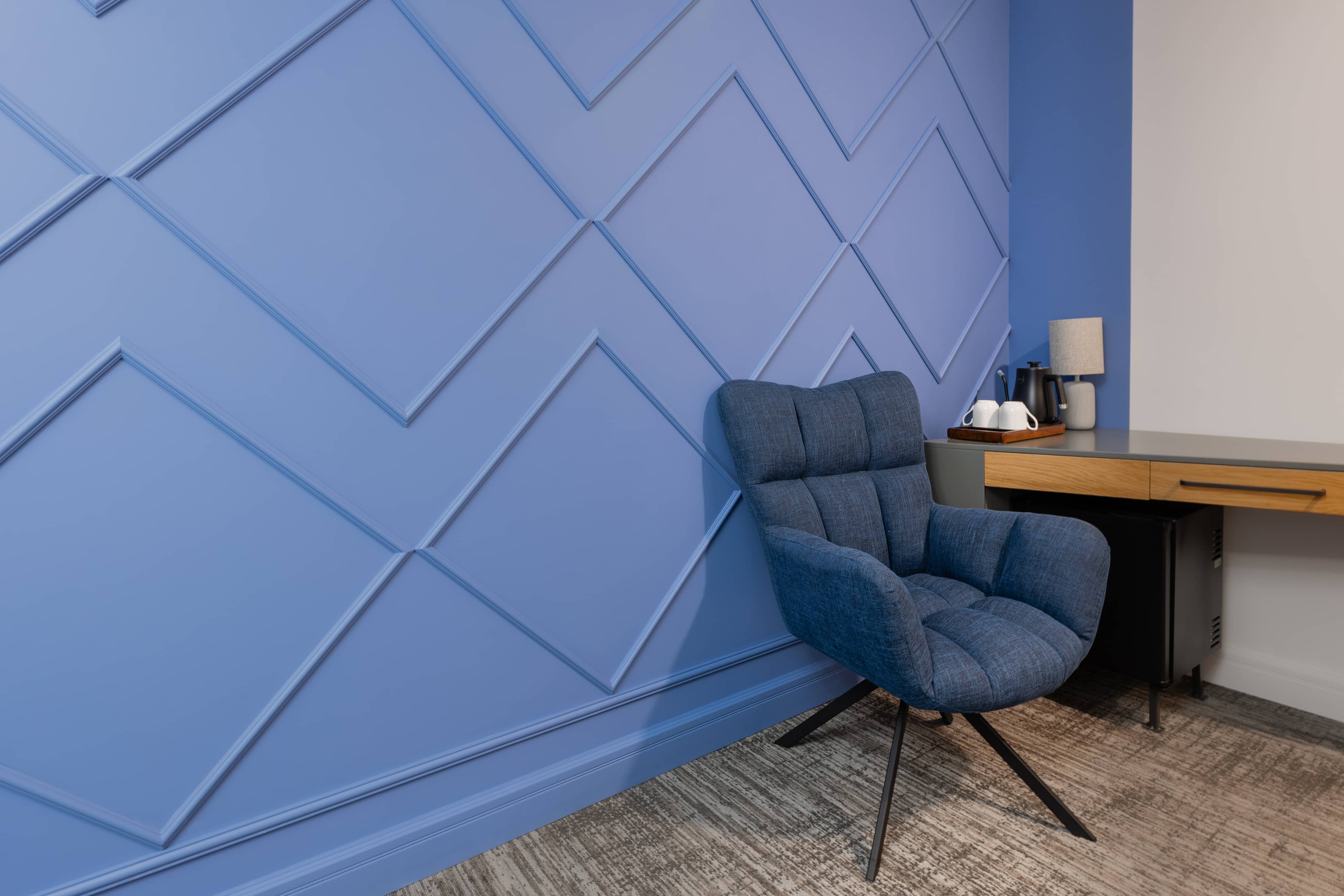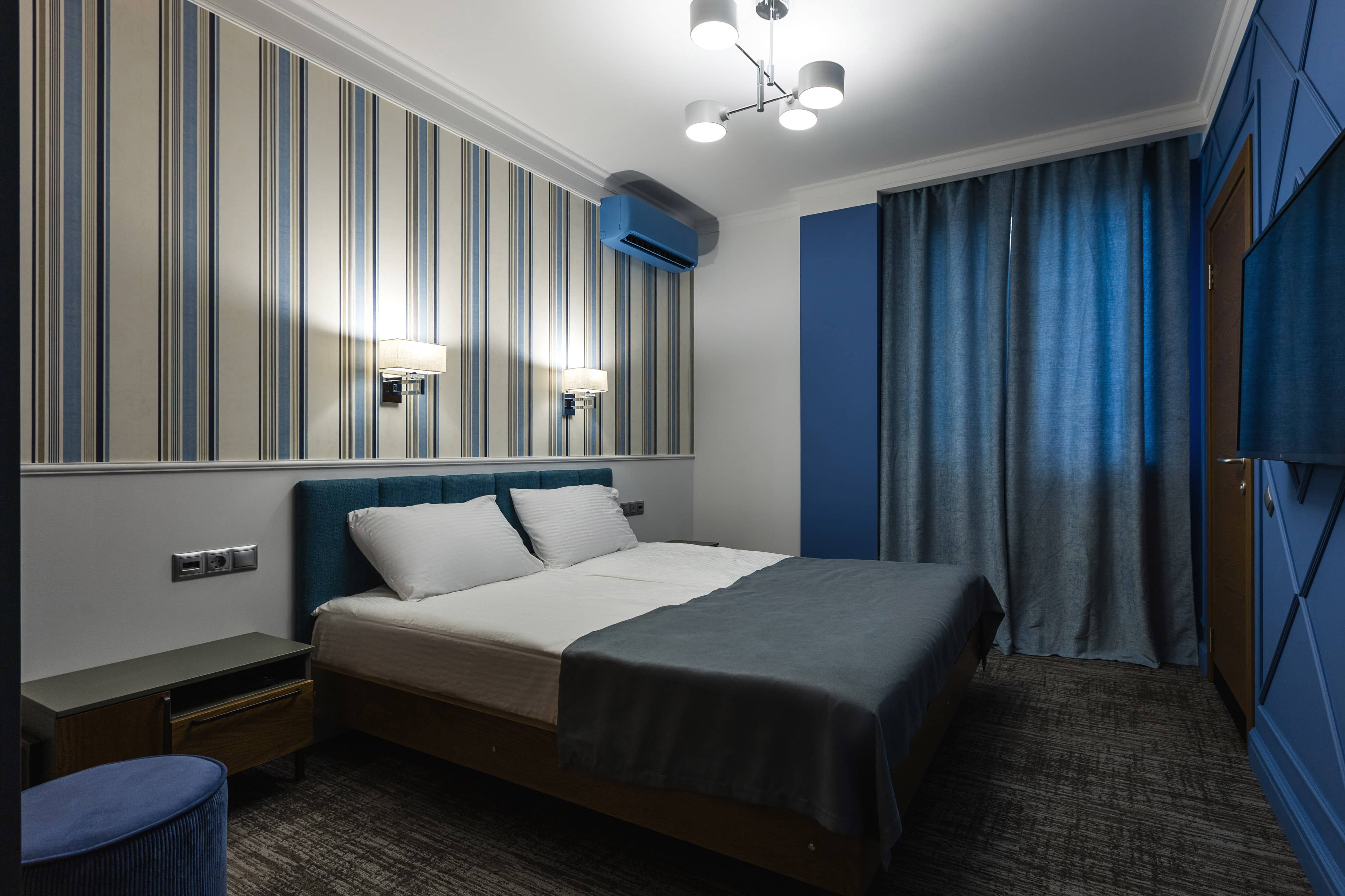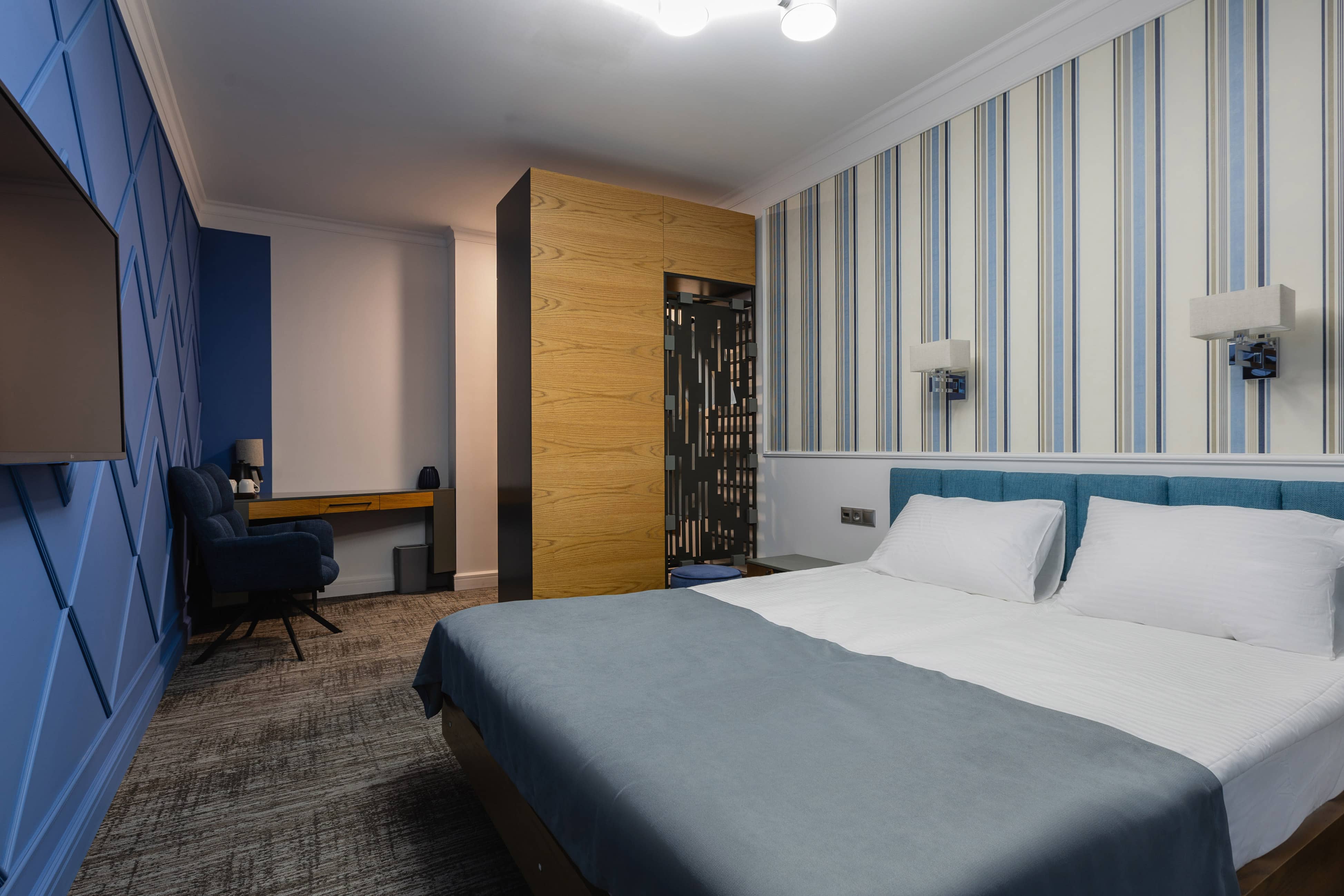 Двухместный номер общей площадью 19.1 м², кроватью размера "Queen Size" с ортопедическим матрасом, рабочим местом, чайной станцией, холодильником, Smart TV, феном, косметическими и банными принадлежностями, гладильной доской и сейфом.